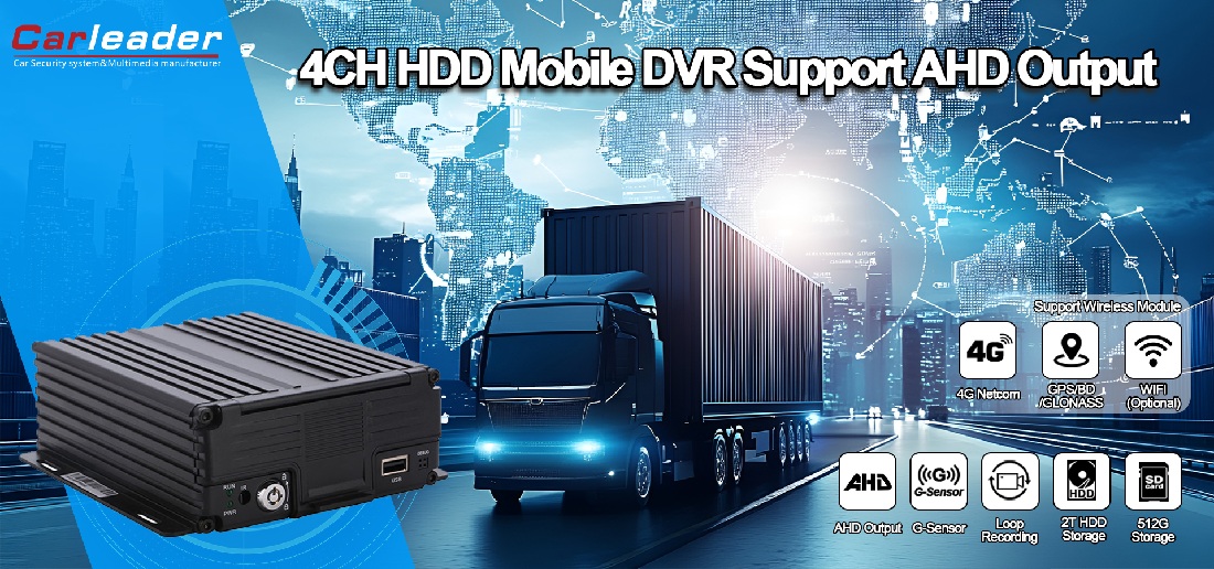 Vedúci4CH 1080P HDD Mobile DVR Podpora výstupu AHDprináša spoľahlivé, škálovateľné a na funkcie bohaté riešenie pre moderný mobilný video dohľad, ktoré zaisťuje bezpečnosť, zabezpečenie a prevádzkové informácie na cestách.