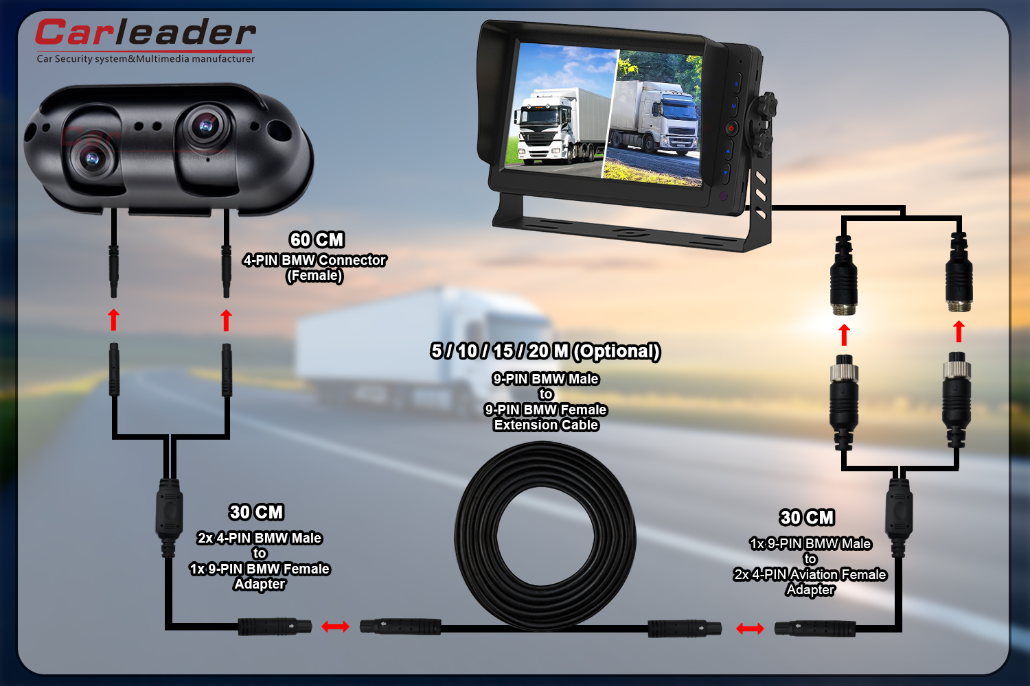 Vedúciponúkne dve rôzne riešenia zapojenia pre ťažkú cúvaciu kameru Starlight AHD s dvoma šošovkami, aby vyhovovali rôznym potrebám zapojenia: