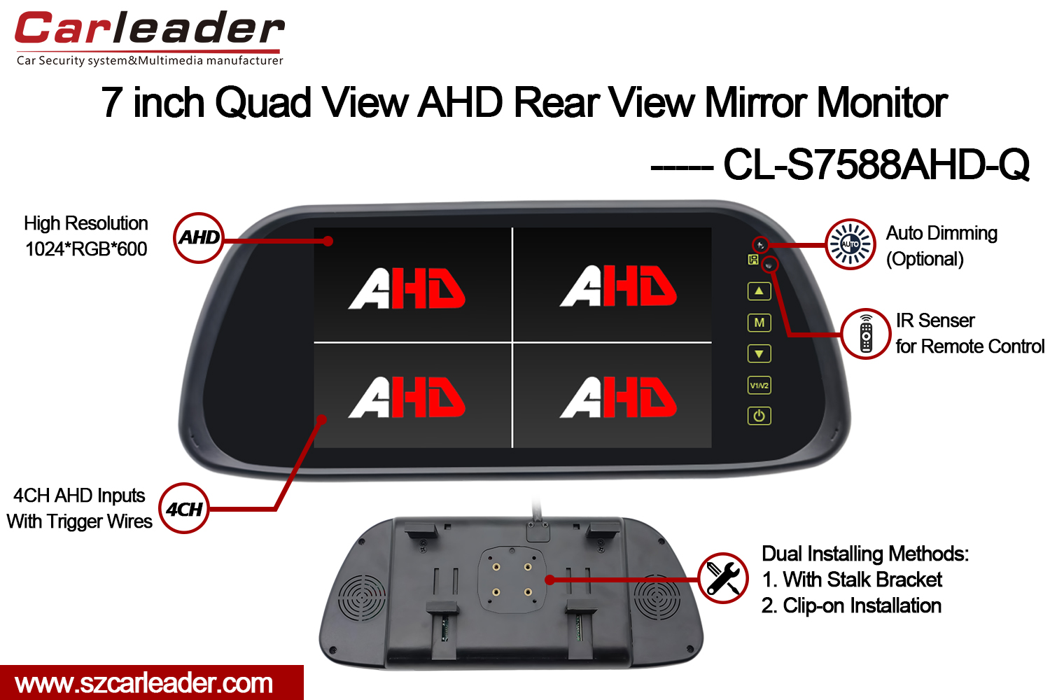 Prečo si vybraťVedúci7-palcový 4CH Quad AHD monitor spätného zrkadla Podpora duálnej inštalácie?