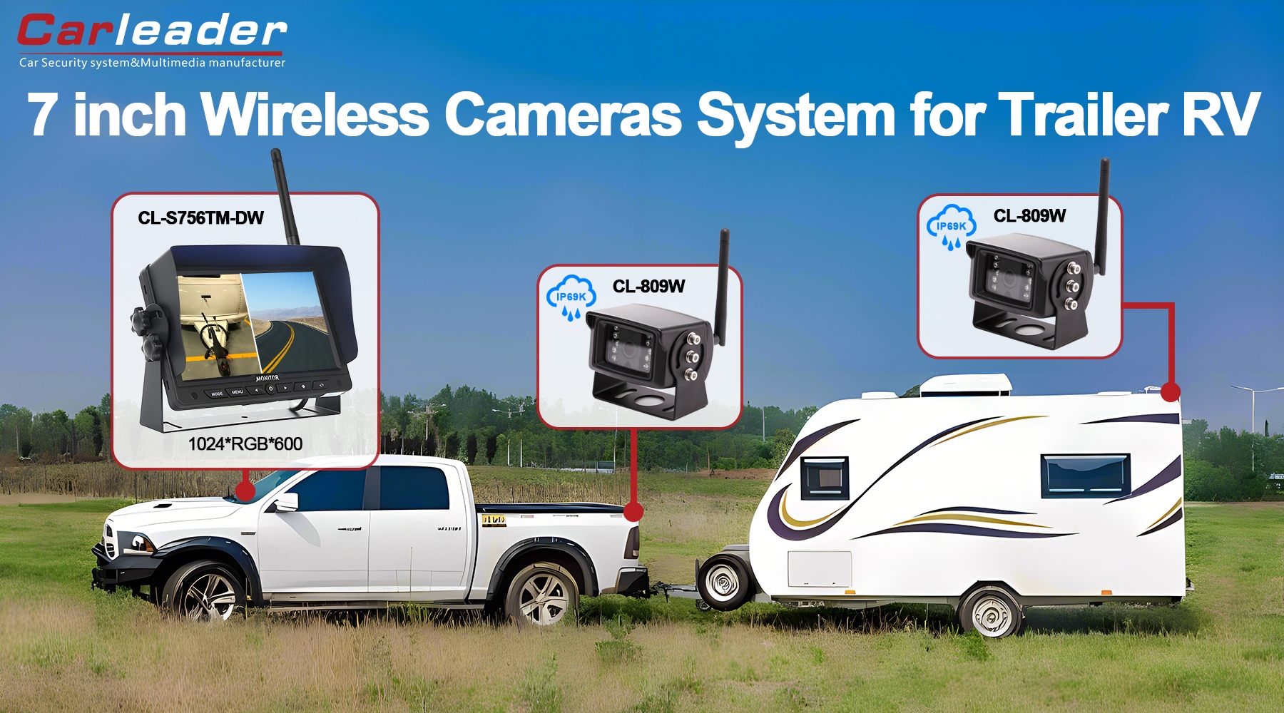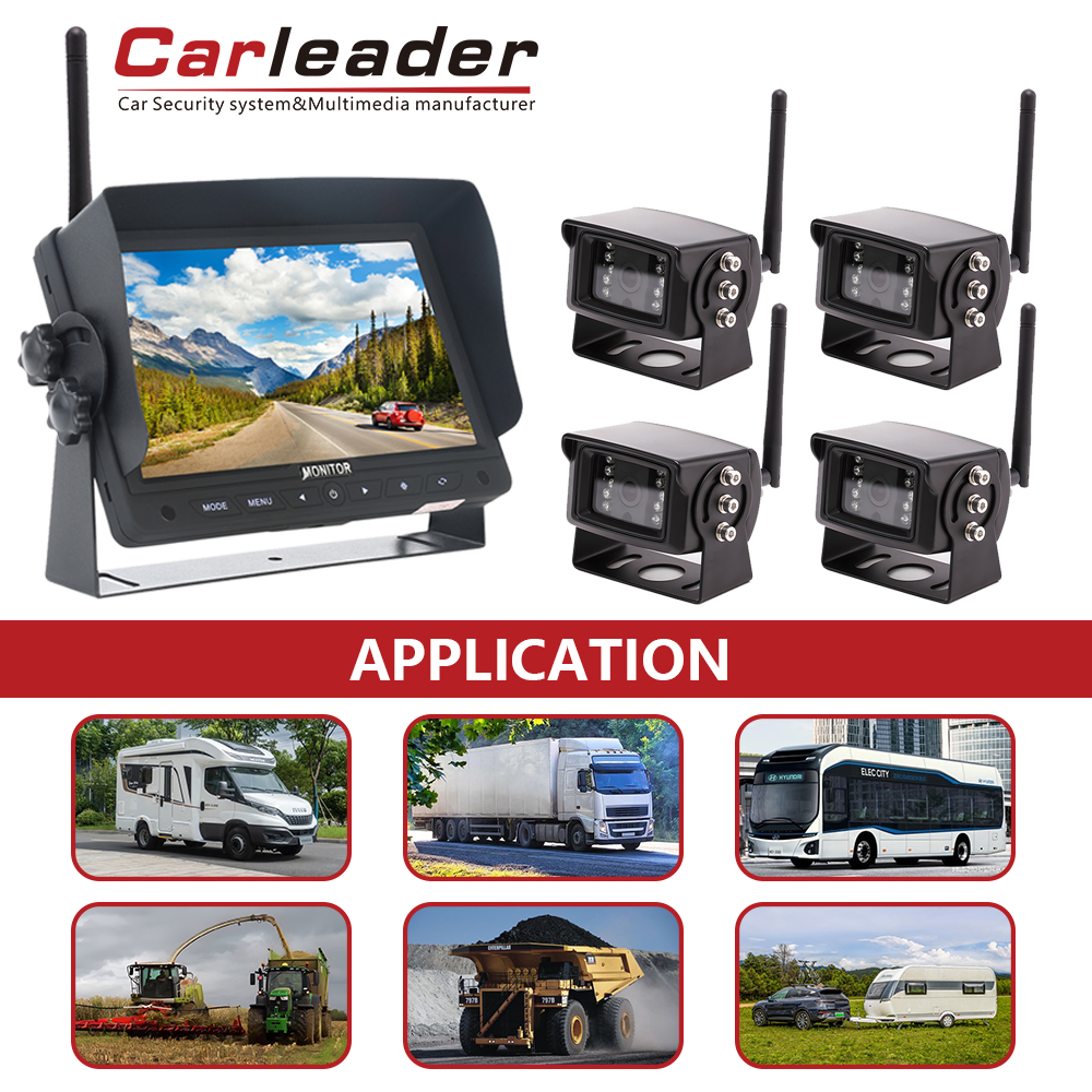 Všestrannosť: Carleader 7-palcový 2,4G digitálny bezdrôtový 2-kanálový kamerový systém s rozdeleným displejom možno použiť na rôznych vozidlách vrátane obytných áut, autobusov, nákladných áut, prívesov atď.