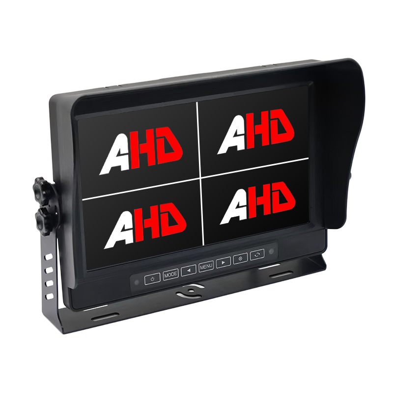 Vedúci10,1-palcový IP69K vodotesný 4-kanálový AHD vstup Dotykové tlačidlá so štyrmi displejmi Monitor vozidlaje vysokovýkonný a odolný 10,1-palcový vodotesný monitor určený na spoľahlivé viackanálové video monitorovanie v náročných prostrediach. Tento monitor, skonštruovaný z komponentov priemyselnej kvality a vybavený quad AHD vstupným systémom, poskytuje jasný, stabilný obraz a všestrannú konektivitu pre nákladné autá, autobusy, vysokozdvižné vozíky, poľnohospodárske vozidlá, stavebné vozidlá a iné vozidlá, ktoré si vyžadujú vonkajšie použitie.