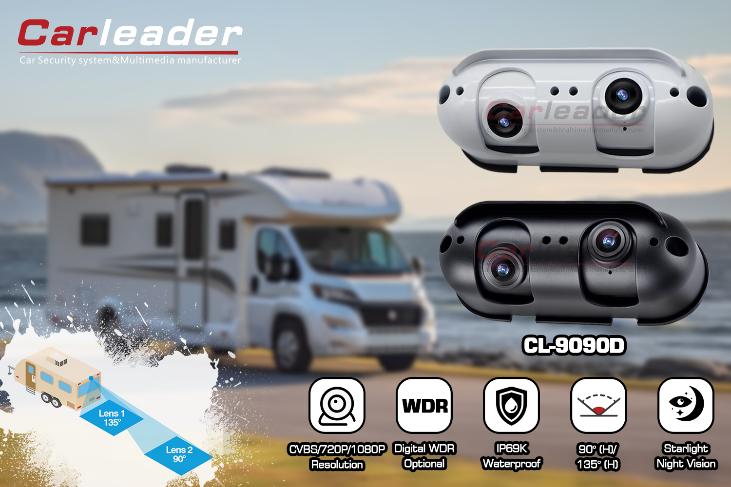 VedúciZadná kamera AHD Starlight s dvojitým objektívom vhodná pre obytný automobil, súkromná AHD kamera pre spätný pohľad od Carleader, dizajn s dvoma šošovkami umožňuje užívateľovi mať jasnú viditeľnosť pri pohľade na blízko aj na diaľku. Vďaka krytu z hliníkovej zliatiny a krytiu IP69K je kamera pevnejšia a odolnejšia v akomkoľvek drsnom počasí. Táto kamera je vhodná nielen pre ťažké vozidlá, ako sú nákladné autá, autobusy, vysokozdvižné vozíky atď.; vhodné aj pre obytné vozidlá, ako sú karavany a karavany.