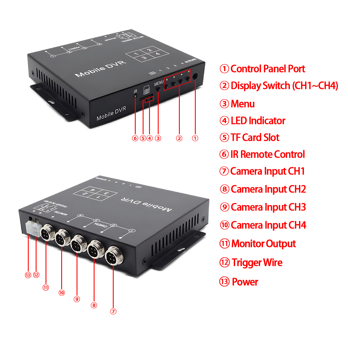 Carleader Quad Video Splitter Box kombinuje pohodlie 4CH video splitter boxu s bezpečnosťou funkcie nahrávania DVR. Jeho komplexná sada funkcií, vrátane samostatného nastavenia obrazu, flexibilných režimov spúšťania (spúšťací kábel a diaľkové ovládanie), nastavenia okrajov obrazovky, širokého napäťového vstupu a robustnej ochrany – poskytuje spoľahlivé a vysokokvalitné riešenie sledovania prispôsobené náročnému mobilnému prostrediu. Zabezpečte si úplné situačné povedomie a zabezpečte si video dôkazy s Carleader 1080P AHD s podporou Quad Split Display Video Processor Video Recording.